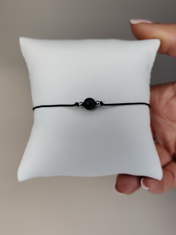 Czarny Turmalin na czarnym sznurku, kamień wiadomości 6 mm, stal nierdzewna.